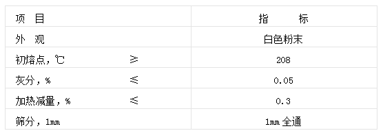 本品為白色粉(fen)末,分子(zi)量(liang)382.58,初熔點(dian)208℃,可溶于甲醇(chun)、乙醇(chun)、乙酸乙酯或丙酮中。本品具有優(you)良的抗氧化性(xing)能(neng)。可(ke)作為(wei)PE、PP、PVC、ABS、SBS樹脂及聚酰胺和(he)(he)橡膠制(zhi)品中,不(bu)(bu)污染、不(bu)(bu)著色,高溫(wen)加工不(bu)(bu)分解(jie),可(ke)顯著改變制(zhi)品的(de)(de)耐熱(re)及抗氧性(xing)。與(yu)硫代酯類抗氧劑(如DLTDP、DSTDP等)和(he)(he)紫外線吸收劑并(bing)用(yong),具良好的(de)(de)協同效(xiao)應。本(ben)品還(huan)具有金屬(shu)離子鈍(dun)化功能(neng),亦應用(yong)于聚烯(xi)烴的(de)(de)電(dian)纜(lan)制(zhi)品。一(yi)般(ban)用(yong)量0.05-0.5%。
